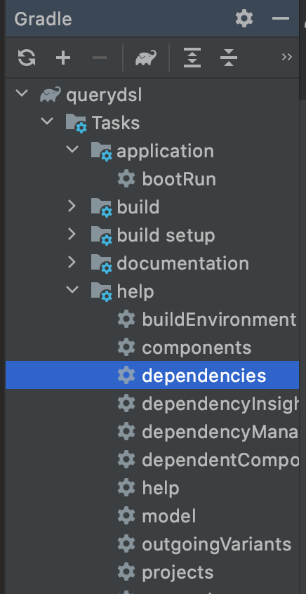 # gradle dependencies 명령어를 사용하면 tree 를 console 창에 볼 수 있다.
